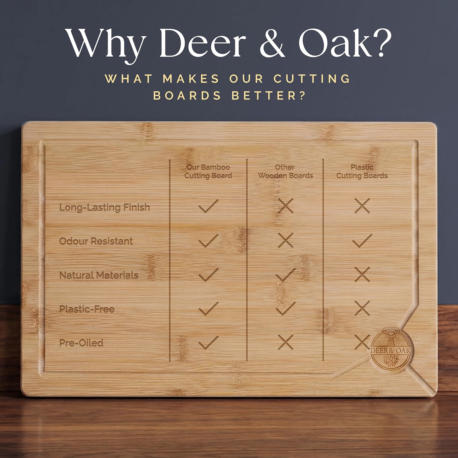 Deer & Oak Premium Organic Bamboo Cutting Board | 38 x 25 x 2cm